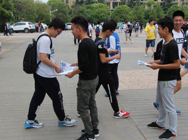书法协会在学校举办了主题为“书写矿大”的书法篆刻作品征集大赛。为了进一步扩大该活动的影响力,使更多的学生知道并参与到本次书法作品征集活动当中来,同时让活动主办方能够征集到更多优秀的书法作品,5月11日,学院5·12青年志愿者协会办公室代表学院于一食堂广场进行了“书写矿大”宣传活动,对来往的学生进行活动宣传。