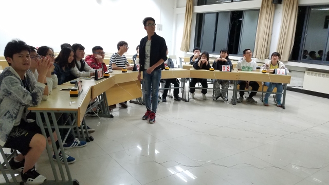 晚上19点半,比赛正式开始。首先,主持人上场介绍了举办本次比赛的目的、比赛规则以及参与评分的各位评委。接下来主持人用事先准备好的纸条,以抽签的方法将参赛的选手分为六个小组,进行第一轮的小组赛比拼。随机组成的队伍,对每一个参赛选手的团队合作能力都是一项巨大的挑战,这种随机的组合,偶然间迸发的默契也正体现了诗词偶得的妙义。如果说小组赛的场面是紧张的话,那紧接下来的个人赛便是激烈了。现场每个桌子上都事先安排好了抢答器,每一位参赛选手需要按下抢答器进行诗词的抢答,稍有不慎便花落他家。因此参赛的每一个人都绷紧了神经,全神贯注的进行一场反应与积累的大比拼。现场实施计分制,最终冠军由累计得分最高的人获取。