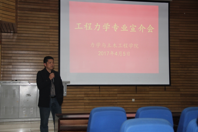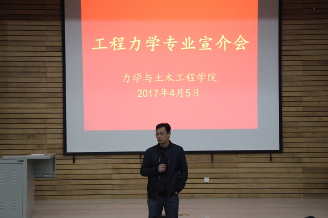 为了让工程力学专业学生能够对本专业有更多的了解,4月5日下午3时,学院于土木学院楼A108会议室召开了工程力学专业宣介会。本次宣介会由院团委书记倪涛涛老师主持,由工程力学专业系主任赵玉成教授与刘卫群教授主讲,院党委副书记张庆春老师出席了此次宣介会,2014级工程力学全体同学参加了本次专业宣介会。