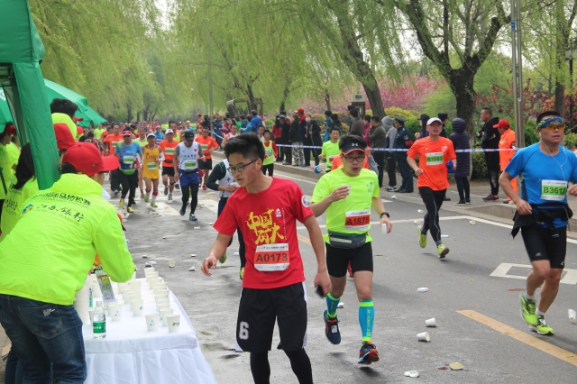 志愿者为参赛选手提供饮用水