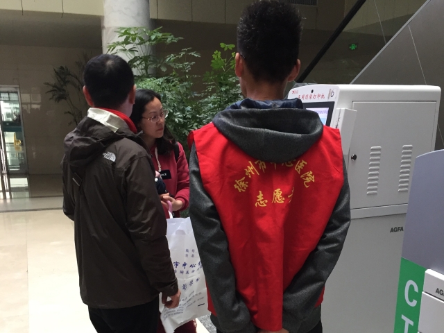下午两点,志愿者们准时到达医院,在医院工作人员的带领下,进行签到并领取志愿者服装。负责人张政将志愿者们分成两组,第一组志愿者在门诊楼的服务大厅进行志愿活动,负责引导前来就诊的患者使用自助挂号机进行挂号以及其他各项服务,为患者解决在使用机器中遇到的问题,使每一名患者都可以高效地完成就诊。第二组志愿者负责帮助患者打印化验单,使患者能够及时拿到自己的化验单。刚开始,志愿者们都不太熟悉自己的工作内容,但是经过医院工作人员的悉心指导以及志愿者们的认真学习,很快志愿者们就可以熟练地完成自己的志愿内容。下午五点,本次活动结束。在三个小时的志愿活动中,志愿者们除了帮助患者使用自助机器外,还主动搀扶前来就诊的老人并为老人指路。同时,志愿者在帮助他人的过程中,自己也收获了成长。