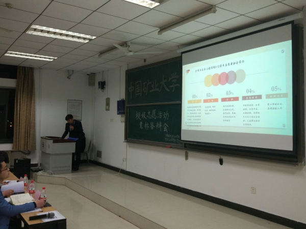 晚上7点,竞标答辩会正式开始。先由各个学院青年志愿者协会代表按照事先的抽签顺序上台进行有关志愿活动内容的ppt展示。然后,竞标组织委员会根据ppt展示的内容提出问题和看法,代表们在针对提问进行答辩。最后,竞标组织委员会通过商讨和意见交流给出评判。土木学院5·12青年志愿者协会竞标的活动是“爱心·创意纸艺周”。此次活动主要是开展主题为“爱心鹤的手工折纸,通过开设体育类的游戏边宣传边收集征集艺术纸鹤作品。最后,纸鹤作品以矿大学生寄托爱心的形式发放到社会。他们提出此次活动可以更好的学习传统文化校园的精神,展示当代大学生的风采及能力,锻炼同学们的动手能力,同时可以奉献自己的爱心。