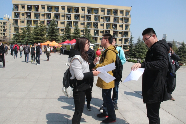 3月27日,土木学院5·12青年志愿者协会于二食堂前开展“舞‘文’弄‘默’”比赛的前期宣传,为即将而来的比赛喧声造势。