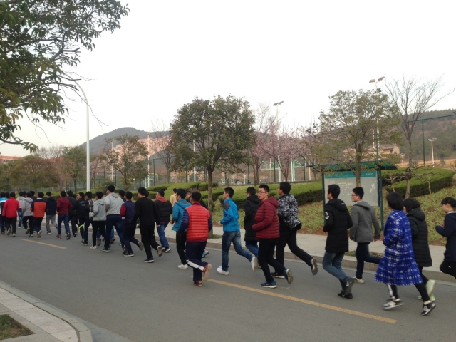 为了让学生们养成早起锻炼的好习惯,拥有更健康的身体和更强健的体魄, 3月15日,学院2016级辅导员曹鹏老师组织本年级全体学生环绕桃苑运动场进行早操晨跑。