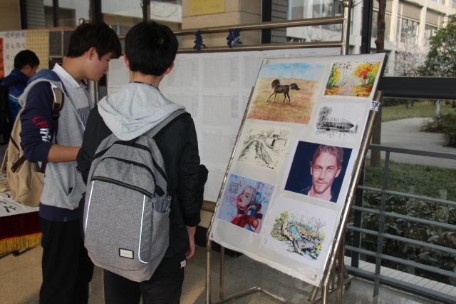 经过前期的活动宣传,许多同学们都积极参与,征集到了许多优秀作品,工作人员将优秀作品整齐地贴在展板上,方便同学们观看欣赏。书法作品笔酣墨满,刚劲有力。每一种字形都有着独特的韵味。楷书方方正正,笔力劲挺,草书流畅自然,如人潇洒站立。除了古色古香的书法作品外,绘画作品也成为本次展览会的一大亮点。在山水画中,国画作品用多样的色彩和清新的构图来描绘风景,素描作品则选择用流畅的线条,简单的颜色来展现祖国的秀美山河。这些特色鲜明的作品更是赢得了老师和同学们的一致赞赏。很多同学表示,一下课就能得到这样的视觉享受真的很棒。
