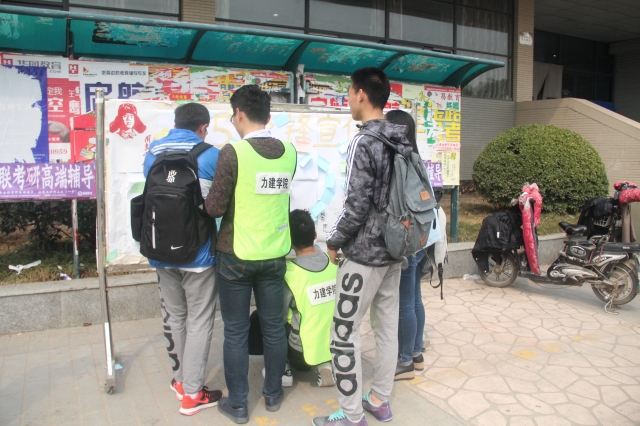 中午11点,活动志愿者集合完毕。环建部部长王文富指挥志愿者布置“雷锋纪念日”展板,他向志愿者们初步地讲解了活动细节,以便于志愿者们在宣传活动时能简洁明了地向过往的同学们介绍本次活动。活动开始后,志愿者们通过宣传单向过往的同学宣传本次“雷锋纪念日”,并倡导同学们在活动展板上留下自己对于纪念日的希冀与看法。同学们纷纷在展板上留言,写下自己的想法。下午一点半,本次宣传活动顺利结束。