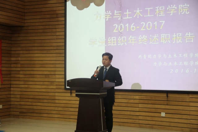 下午四点,会议正式开始。主席团的各位成员先就本学期的学生工作进行总结汇报。团委副书记王辉明首先就团委活动组织和活动策划等方面进行汇报,从团支书的培训、团日活动的有序开展等方面详细介绍了本学年学院团学活动的改进和创新之处。接着,学生会主席陈星宇对学生会就2016年活动举办方面的工作进行汇报,对每位学生组织成员在这一年做出的努力和集体取得的成果表示肯定。同时也对大大小小的活动举办中出现的问题进行了总结和分析,提出了相应的解决措施,并对新学期的学生工作做出了新的规划。接着,新闻传播中心主任李帅对新闻传播中心这一年的宣传工作进行了总结,从新闻宣传、线上宣传、线下宣传等多个方面进行汇报,并对新传今后的工作规划提出了更广泛、更全面的目标。随后,5•12青年志愿者协会主席袁宇对新学年以来整个学院的志愿工作取得的成绩进行详细汇报,并对本学年各位老师在志愿工作方面给予的支持和各学生组织之间的友好互助表示感谢。心理自助中心主任张建坤详细汇报了本学年开展的心理自助工作,总结从各大团体到各个班级的心理自助活动过程中存在的问题,在新的学年对心理自助中心提出了新的要求。最后,社团联合会主席夏磊就各个社团在各自方面取得的创新性进展和成就进行总结性报告,详细汇报了各社团举办的特色性活动和取得的成效。