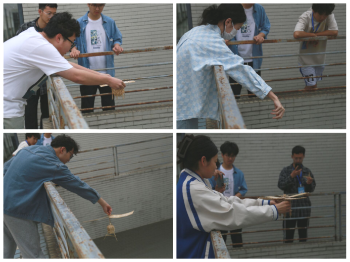 楼顶层,放飞自己的模型。最终,有20组学生的作品面对约10米的高度成功存活下来,证明了其结构的稳定性,入围决赛。