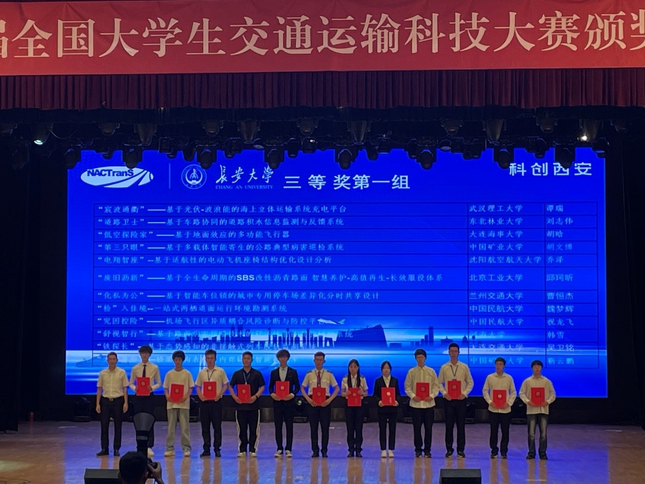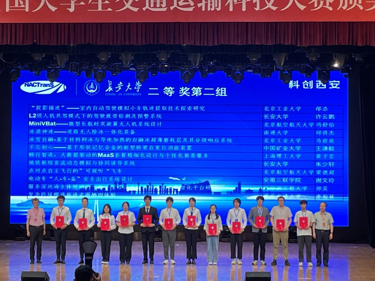 2024年5月24日—5月26日,第十九届全国大学生交通运输科技大赛决赛在长安大学举行,学院团委书记朱宁带领三支学生队伍前往参加,在本次竞赛中荣获二等奖2项、三等奖1项。