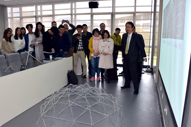 报告会上,川口健一教授结合东京大学开展的工程结构试验的经历以及自己团队最新的研究成果,报告主要介绍了空间结构的挑战。首先介绍了一种带预应力的空间桁架结构,接着详细讲解了张拉整体结构,通过现场与同学们的互动问答及三维实物模型演示,使同学们形象地理解了这种结构,最后通过几个试验视频,介绍了可重复使用展开式的壳体结构,如何发现科学问题,并通过试验研究逐步解决关键技术问题的过程和相关成果。报告深入浅出,激发了广大师生的浓厚兴趣,极大拓展了学院师生的视野。而后教师代表和学生代表同川口健一教授在52av