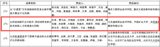 作为第二完成单位的项目《以科技创新平台为依托,协同培养多层次技术技能人才探索与实践》喜获国家级教学成果(职业教育)二等奖。