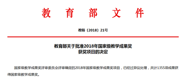 近日,教育部下文《关于批准2018年国家级教学成果奖获奖项目的决定》。52av