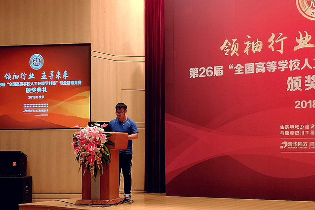 8月23日,第26届全国高等学校人工环境学科奖(人环奖)颁奖典礼在清华同方科技广场隆重举行,住房和城乡建设部、中国制冷学会、中国制冷空调工业协会、中国建筑学会暖通空调分会、中国建筑节能协会、中国勘察设计协会等单位负责人出席颁奖仪式。学院建筑环境与能源应用工程专业2015级李天成同学代表学校荣获全国一等奖(总分第一名),并作为获奖选手代表在大会作了交流发言。另外,住建部高校建筑环境与能源应用工程学科专业指导委员会授予52av