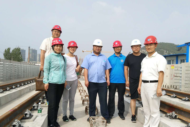 在项目总工羊涛带领下,教师们深入三跨连续高架桥以及上部轨道铺设施工现场,调研项目施工过程中遇到的技术难题,就轨道列车自动控制、三跨连续梁预应力两端张拉、桥面防水、轨道梁架设施工和钢轨材质及防锈等问题进行了深入探讨,并就进一步建立本科实习基地以及在后期桥梁监测与养护等方面进行深入商讨。