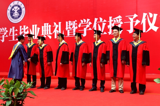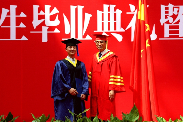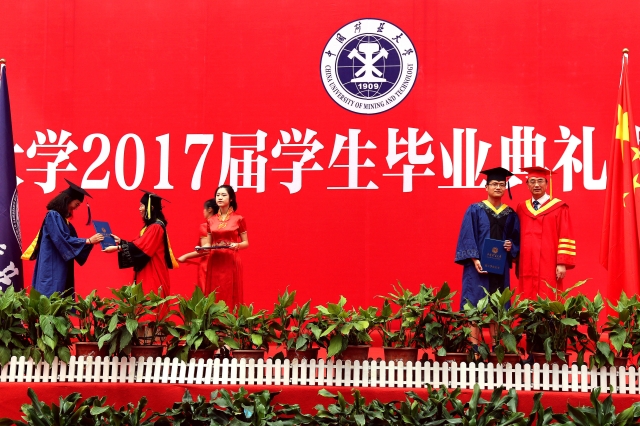 伴随着欢快的旋律,学院和深部岩土力学与地下工程国家重点实验室2017届毕业研究生(10名博士、147名硕士)身着学位服依次登上主席台,校长葛世荣和院长叶继红为他们一一扶正流苏、颁发学位证书。此刻,收获时的幸福笑容洋溢在每一个人的脸上,大家纷纷以毕业典礼现场为背景拍照,留下这美妙的时刻。