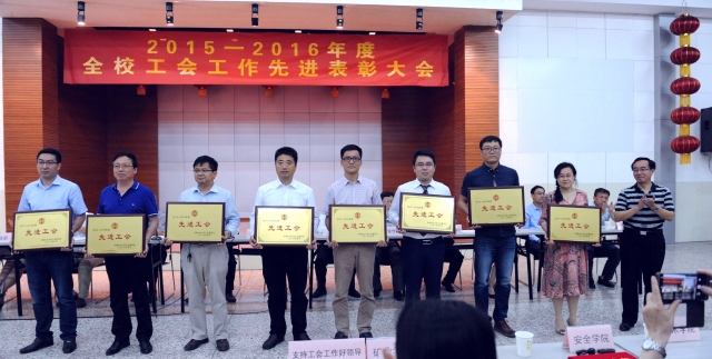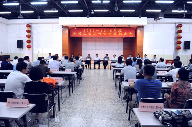 2015-2016年度工会工作先进表彰大会在文昌校区教工之家举行。校党委副书记蔡世华、校党委常委、组织部长王增国、工会主席李来成、学校各职能部门领导以及各基层单位分管工会工作的领导、二级工会主席、工会委员等出席了本次表彰大会。会议由工会主席李来成主持。学院工会积极组织工会委员参加了本次大会。