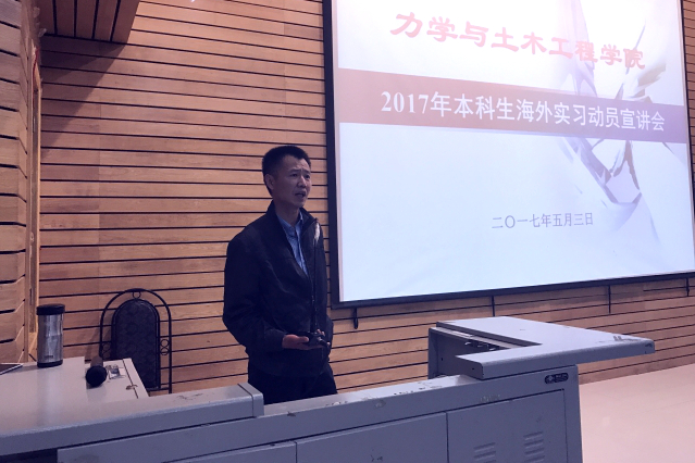 在学院楼A108报告厅举行2017年本科生赴海外实习动员宣讲会。学院教学副院长王文顺教授、教学管理办公室主任纪绍斌老师、本科生2015级辅导员游洋老师参加本次海外实习动员宣讲会。学院2014级和2015级本科生部分同学积极参与了此次动员宣讲会。会议由学院教学管理办公室主任纪绍斌老师主持。