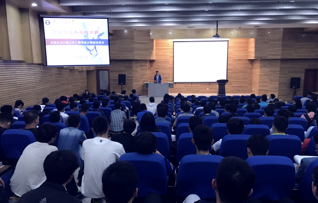 在学院楼A108报告厅召开本科生2015级土木工程专业分课组动员会。学院教学副院长王文顺、建筑工程系教师袁广林、道桥与地下工程系教师东兆星、岩石力学与工程研究所教师孟波、岩土工程研究所教师石荣剑、教学管理办公室主任纪绍斌、本科生2015级辅导员游洋出席动员会。学院2015级土木工程专业全体本科生参加动员会议。