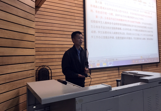 开展本科生2015级土木工程专业学生分课组工作的总体安排,并在会议现场为同学们详细解读了学院关于《关于2015级土木工程专业分课组的通知》和《关于土木工程专业分课组的管理办法》文件精神和工作要求。他指出,土木工程专业课组分配是以适应社会对人才的需求为目标的,这将以有利于学生个性发展和自主择业,有利于教学资源的合理调配以及教学的组织与实施。他强调,学院将严格遵循“专业规模适度的原则”和“公开、公平、公正”的原则,认真做好本科生2015级土木工程专业分课组工作。他还细致介绍了学院开展本科生2015级土木工程专业分课组工作的指导思想、组织机构、工作原则、实施程序、管理办法、专业设置、班级安排、工作要求等方面的具体情况。