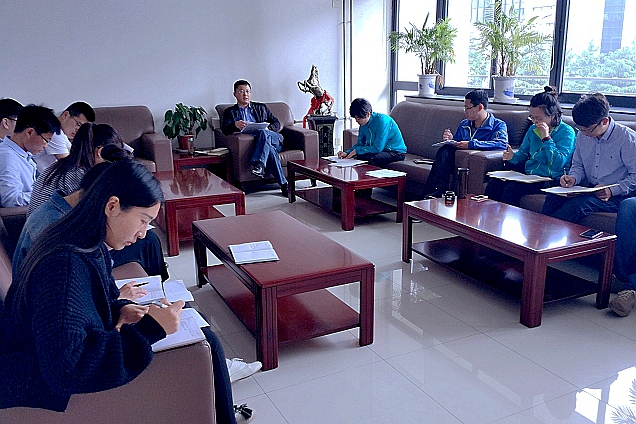上午九时,会议正式开始。张书记首先带领大家通读习近平总书记在中国政法大学的讲话稿。在读到中国政法大学“不忘初心跟党走”的主题团日活动时,张书记表示,学院的主题团日活动要遵循一事一议、一题一议的原则,在形式的多样性、学生组织的主动性和效果的影响力方面下功夫。同时,他指出,学院应重视并规范基层党支部建设,着力发挥基层党支部的战斗堡垒作用和党员的先锋模范作用。针对习总书记所说的我国国情的复杂性和特殊性,张书记结合学院具体工作,提出他山之石,可以攻玉。一方面学院要借鉴其他学校、学院的优良做法,另一方面学院应保持、发扬自己的先进举措和制度,并形成长效机制。至于习总书记在讲话中谈到的对青年的要求和希望,张书记认为学院学生应深入思考总书记提出的“心无旁骛”、“静谧自怡”等成语,真正领悟这些成语的涵义。此外,不仅是学生,老师们也应该谨记“学习”、“思考”、“观察”、“实践”、“创新”这五个关键词,在工作中学、思、行、悟,将脚踏实地与仰望星空相结合。