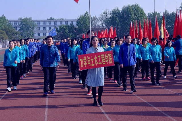 运动场上彩旗飘扬,伴随着激昂奋进的运动员进行曲,学院200余名教职工组成的方阵迈着矫健的步伐,高喊口号,精神抖擞地步入会场。大家面带笑容、昂首阔步,融入到此次盛会热烈而欢乐的氛围中。开幕式结束后,学院广播操代表队参与了大众广播体操表演环节,大家动作标准、整齐划一,展现了近一个月以来的训练水平。