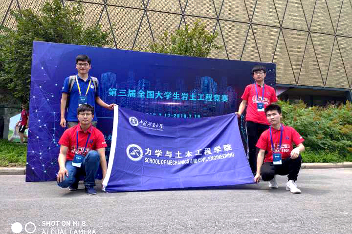 第三届全国大学生岩土工程竞赛是由高等学校土木工程学科专业指导委员会、中国土木工程学会主办,中国土木工程学会土力学及岩土工程分会、天津大学承办的高水平大学生岩土工程竞赛,目的是为了通过竞赛活动,激发青年学生的创新意识,提高对岩土工程及相关学科的学习兴趣,锻炼学生的动手实践能力和协作精神,促进不同高校学生间的沟通交流。本届竞赛以地下管廊建造为主题,3人为一组,在两个小时内利用纸板、胶带等材料建造出一个地下管廊,最后模型以承受70千克重量,且沉降量较少为标准进行评分。在莫品强老师的精心指导下,李国耀、王腾、杜飘三名同学的作品荣获三等奖。