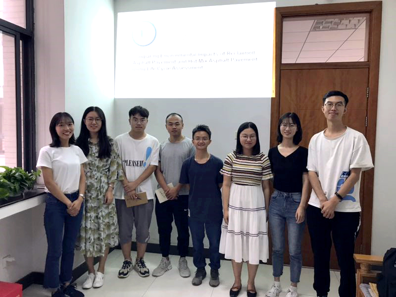 会议上,两名研究生对Parry教授提出的相关问题进行了回答交流。Parry教授是世界道路全寿命周期评估的顶级专家,多年从事与life cycle assessment有关的研究活动,对学生的论文进展汇报提出了建设性的指导意见。Parry教授先对学生团队进行的工作现状表示认同鼓励,并就数据来源的时效性、质量、影响因素等方面提出了具有建设性的指导意见。Parry教授对中国的道路全寿命周期评估研究展现了浓厚的兴趣,并表示希望参与研究并有机会来中国进一步交流。