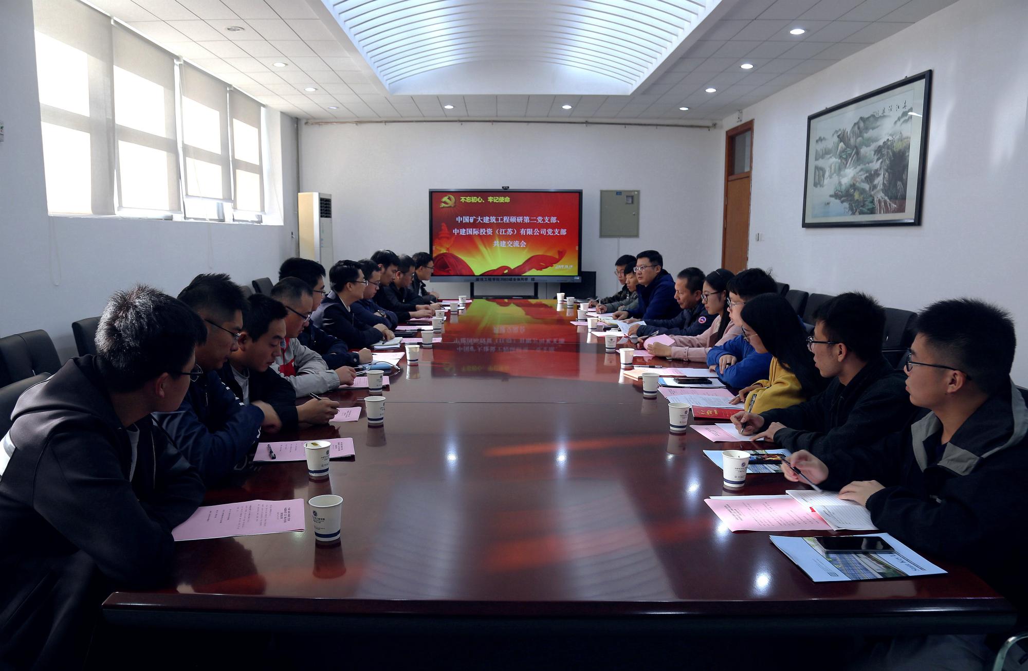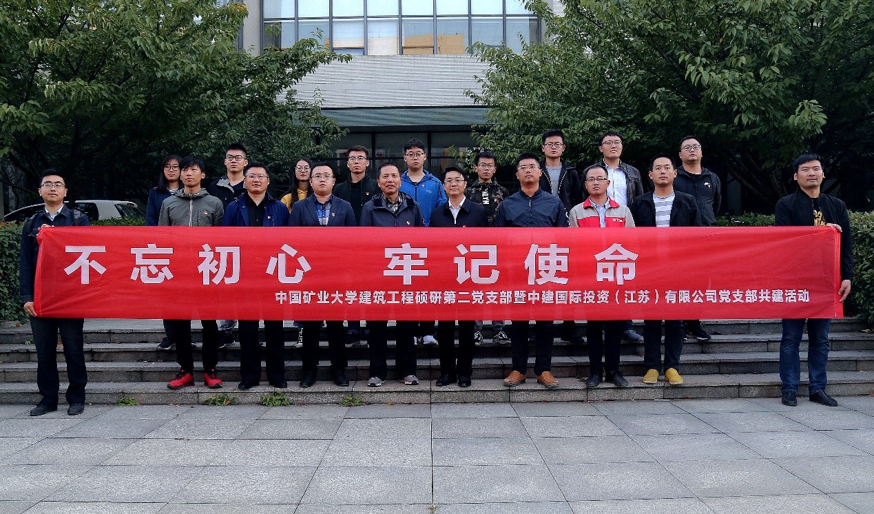 为了深入开展“不忘初心、牢记使命”主题教育,加强校企之间的文化交流以及党支部之间的联系共建,10月15日下午,学院党委组织建筑工程硕研第二党支部同中建国际投资(江苏)有限公司党支部在矿大南湖校区开展共建交流活动。