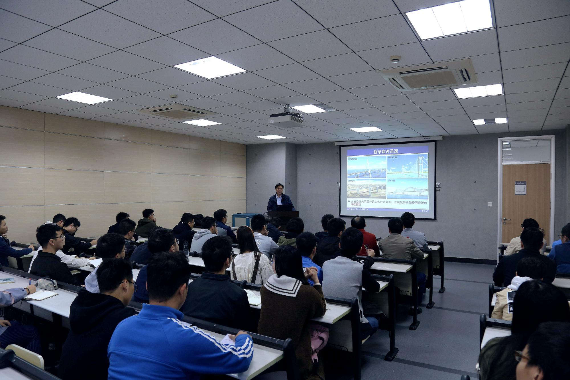 2019年10月19日,大连理工大学伊廷华教授在303报告厅作了题为《大跨度桥梁监测系统优化设计与系统集成技术》的学术报告。院长叶继红教授、道桥与地下工程系主任东兆星、支部书记刘书奎等老师以及相关专业研究生近100人参加了报告会,会议由叶院长主持。