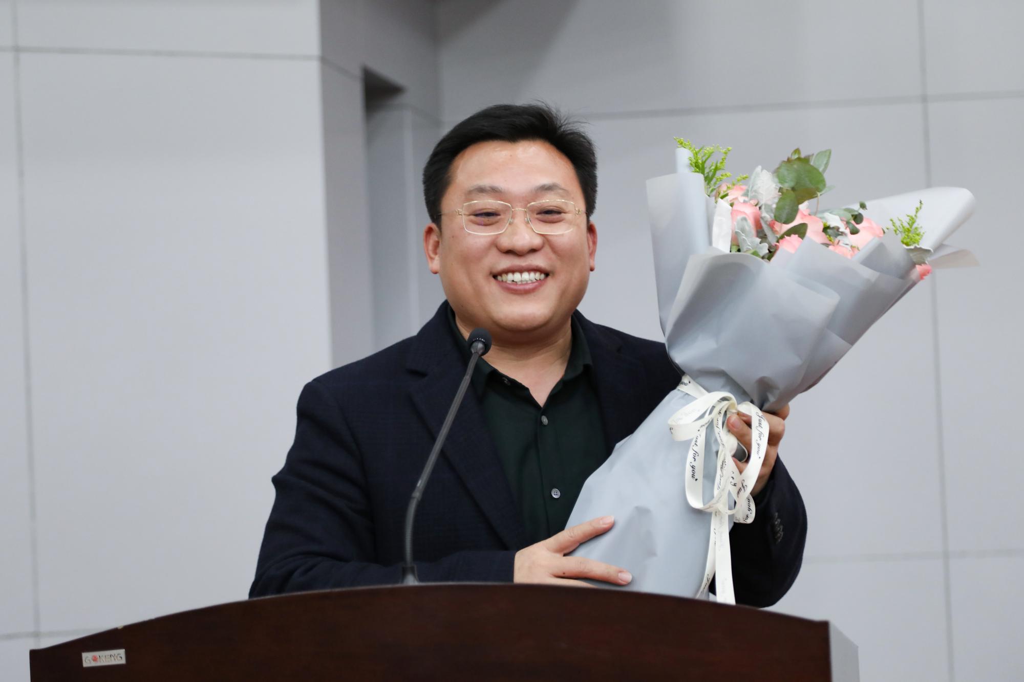 江苏诚意集团有限公司副总裁、总经理曹永先生在会上发言。他简要介绍了江苏诚意集团有限公司与学院开展的合作交流情况以及诚意奖学金的设立初衷,表达了与学院在人才培养和创业就业等方面加强合作的意向。他对获奖学生提出三点要求:不忘初心,牢记使命,坚定信心;勤奋学习,超越自我,立身百行;走进新时代,融入国家建设事业,脚踏实地的完成人生黄金时代的青春使命。