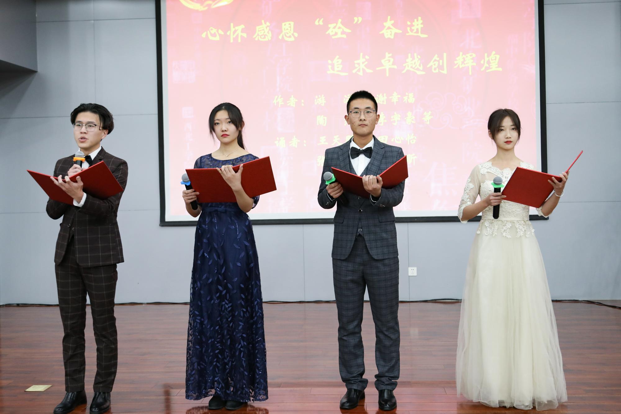 大会现场还举行了奖学金颁奖仪式,播放了学院专题片《拓进》以及《收获2019,奋进2020》等视频。学生代表为企业、校友代表敬献花束,并朗诵了原创诗歌《心怀感恩“砼”奋进,追求卓越创辉煌》。