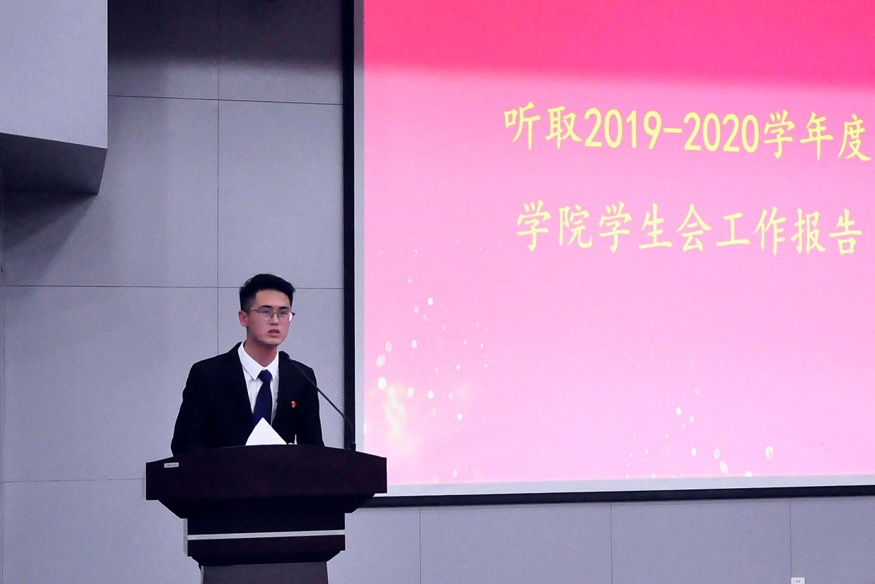 学院学生会主席韩飞虎以“砥砺前行,贡献青春正能量,砼创未来,开启土木新篇章”为题,向大会作了学院2019-2020学年团学组织工作报告。