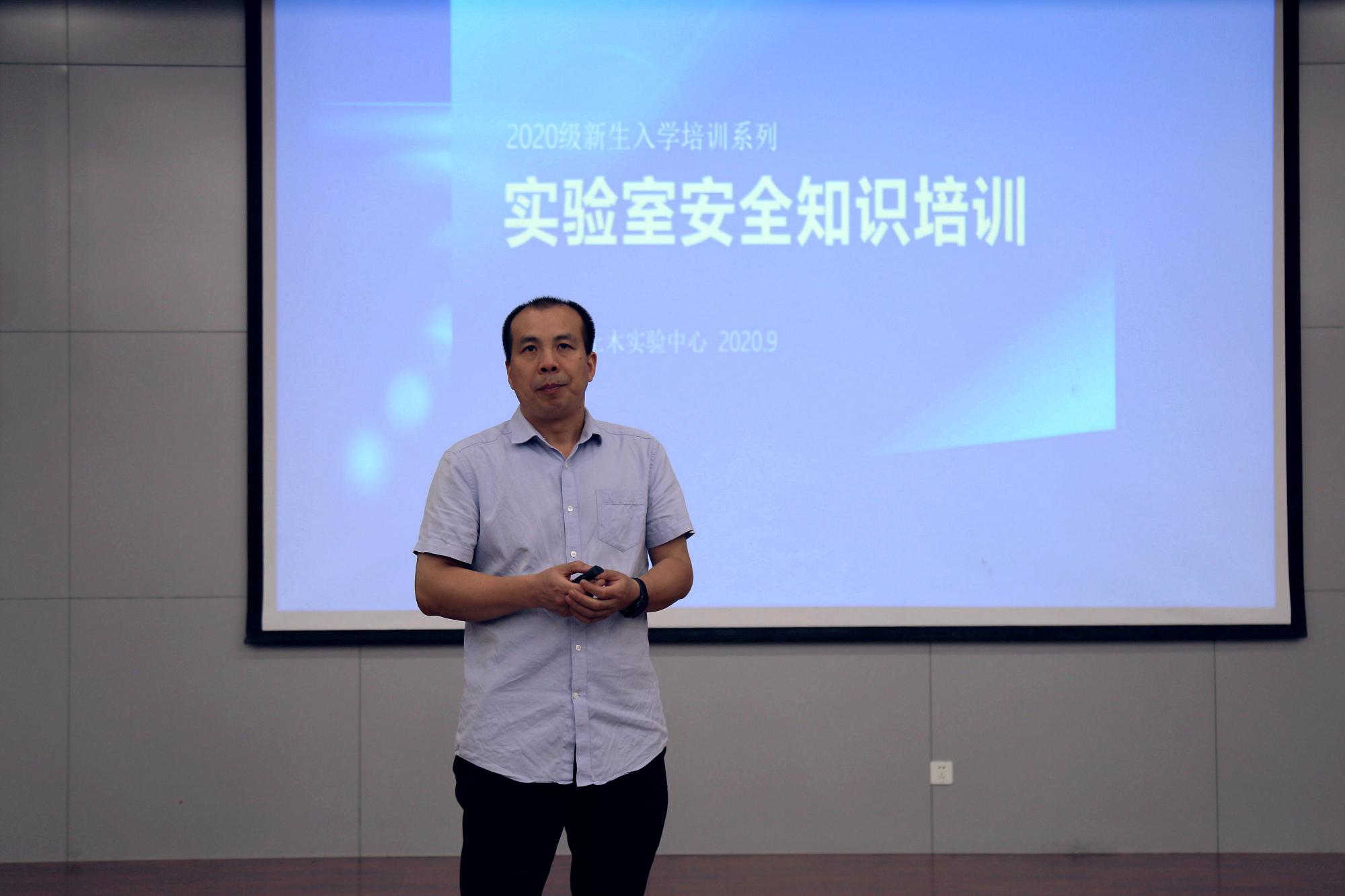 力学与土木实验中心副主任钟卫平给新生做实验室安全知识培训