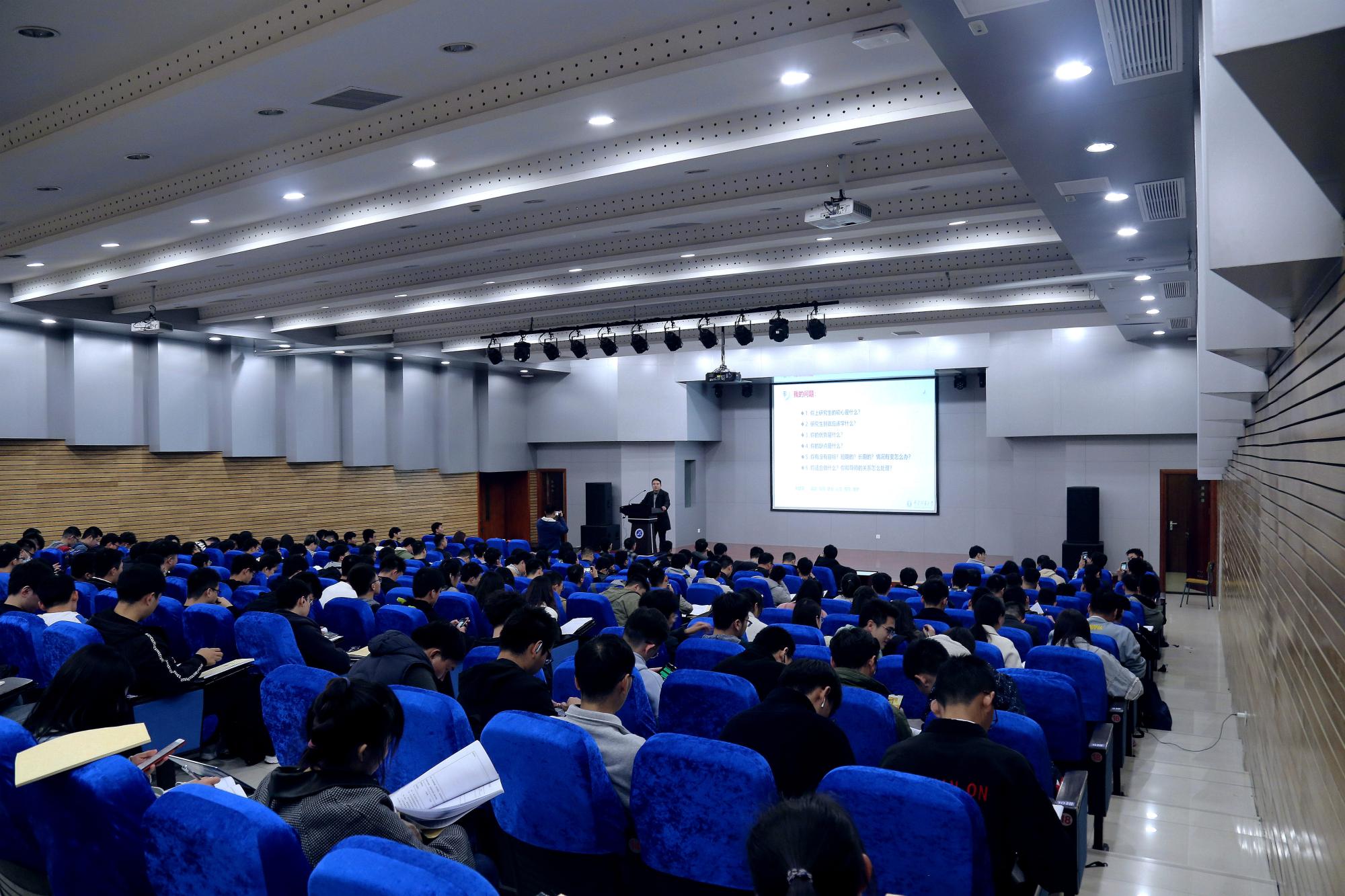在互动环节,张营营副院长对同学们的问题一一作了解答。张营营副院长首先强调在面对科研压力时,同学们一定要注意合理排解情绪;其次,他建议同学们要充分利用现有的良好环境,既要潜心科研学习,又要努力开阔视野;再次,他指出同学们要多与导师进行沟通,多向身边优秀的同学学习,在学习中逐步提高自身综合素质。最后,张营营副院长勉励同学们要在学术道路上不断追求卓越、勇攀高峰。