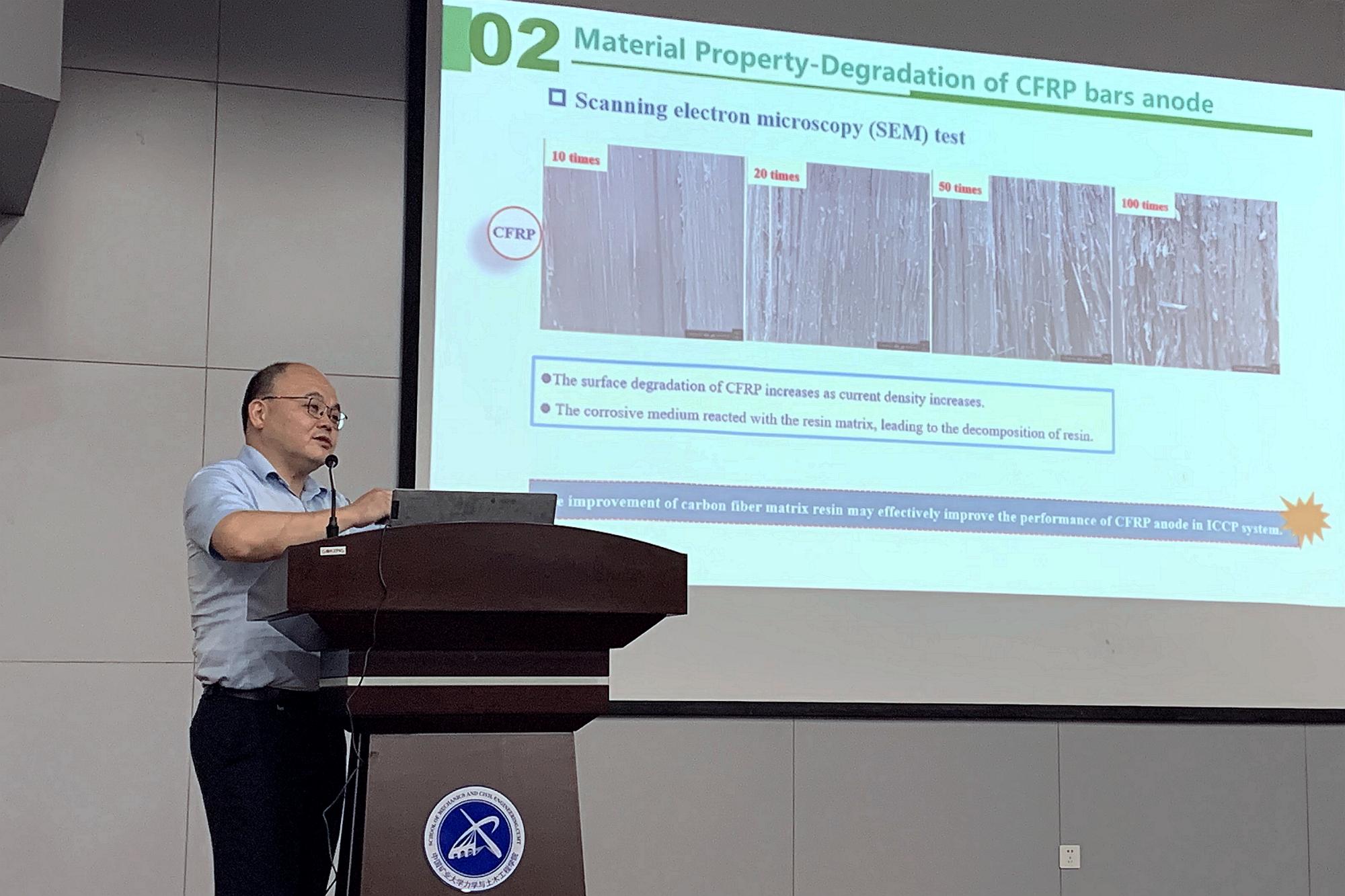 师生做了题为《智防腐型CFRP筋-混凝土组合结构体系研究》的学术报告。本次报告会由52av