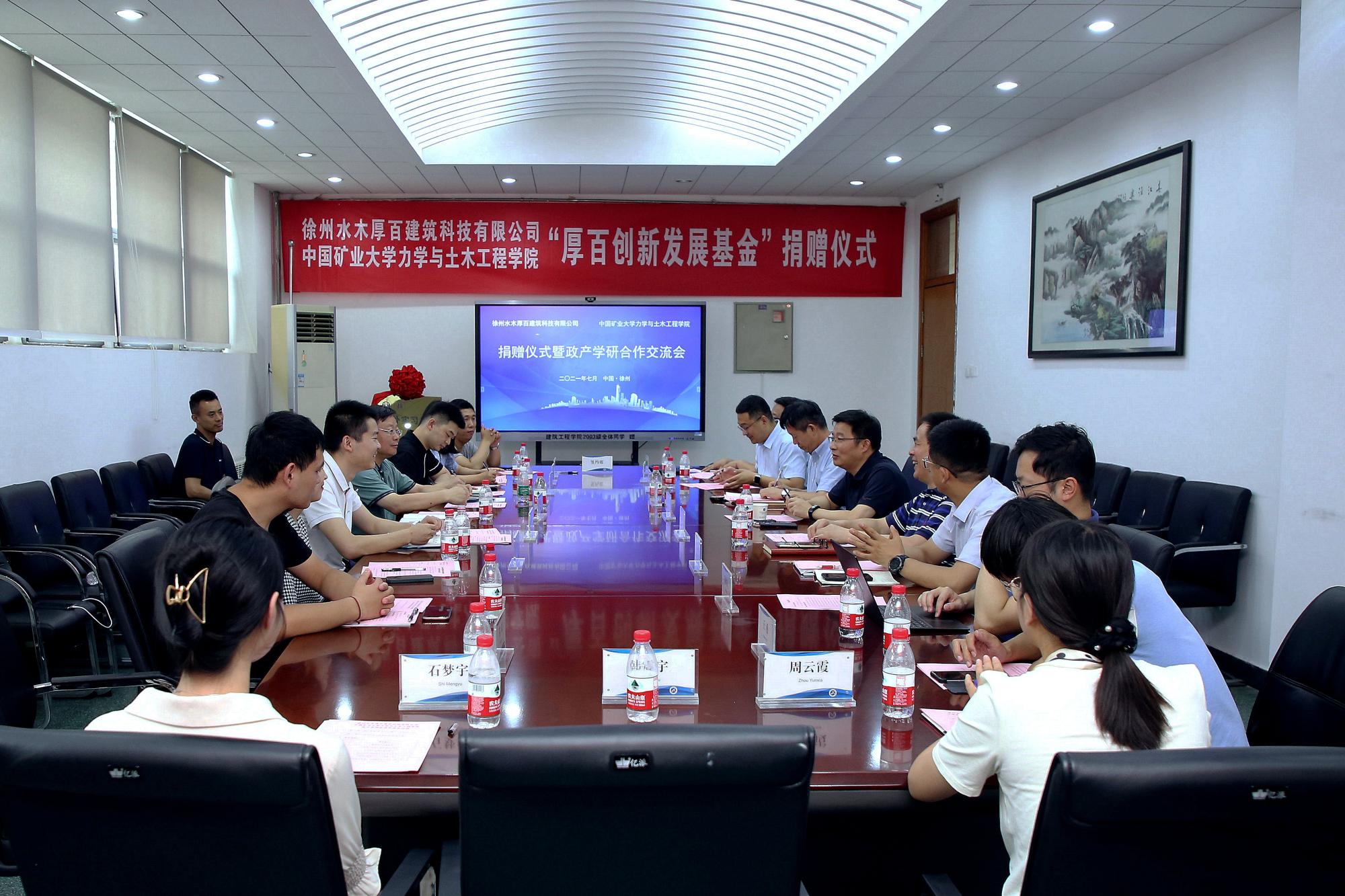 7月14日下午,学院在A220会议室举行“厚百创新发展基金”捐赠仪式。校对外合作与发展处处长钟晓东,学院党委书记高顶、院长马占国、副书记李智、07级校友徐州水木厚百建筑科技有限公司总经理郭杨亮、52av