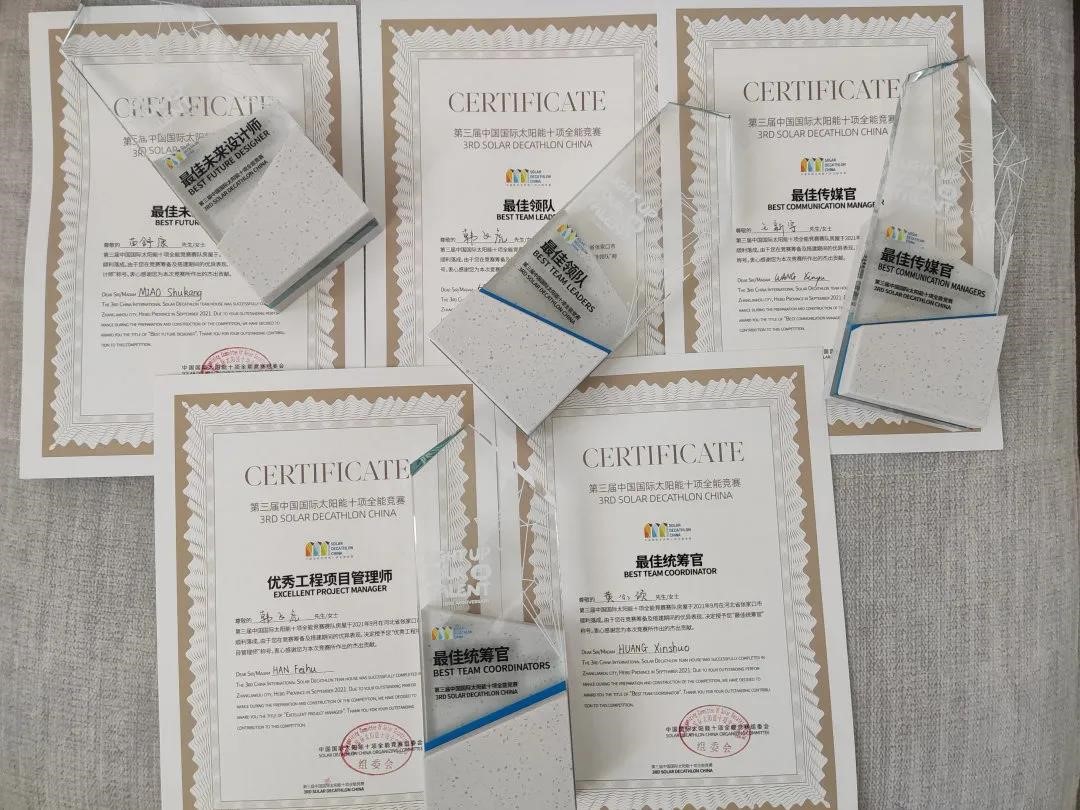 研究生韩飞虎获“最佳领队”奖、“优秀工程项目管理师”,黄心硕获“最佳统筹官”奖,并被新华网、央视网等多家主流媒体报道。不久,团队队员们精心搭建的零能耗建筑将亮相张北,助力冬奥会!