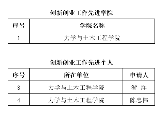 荣获创新创业工作先进学院,学工办主任、本科2019级辅导员游洋老师,合作办学2018级、2019级辅导员陈忠伟老师被评为创新创业工作先进个人。