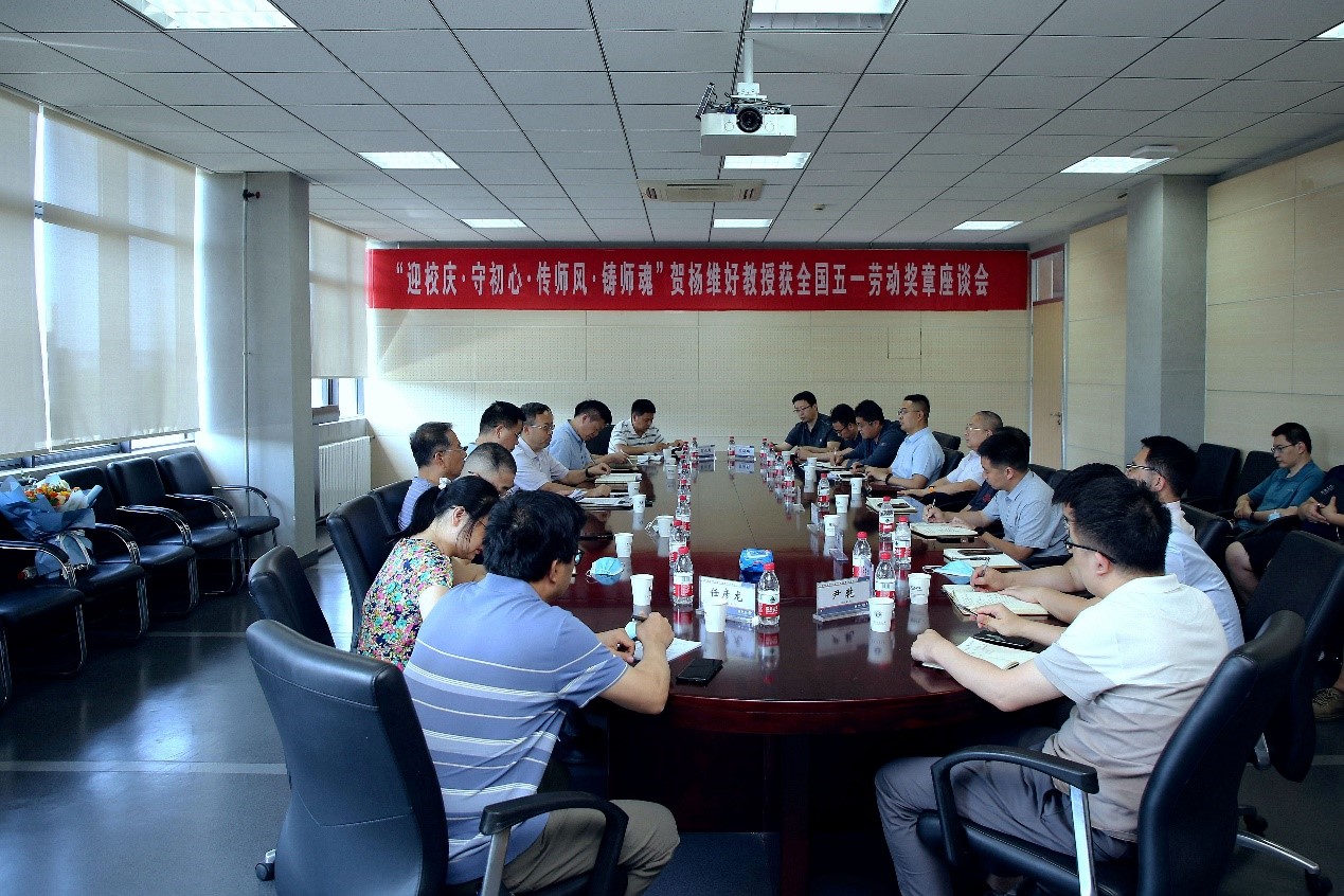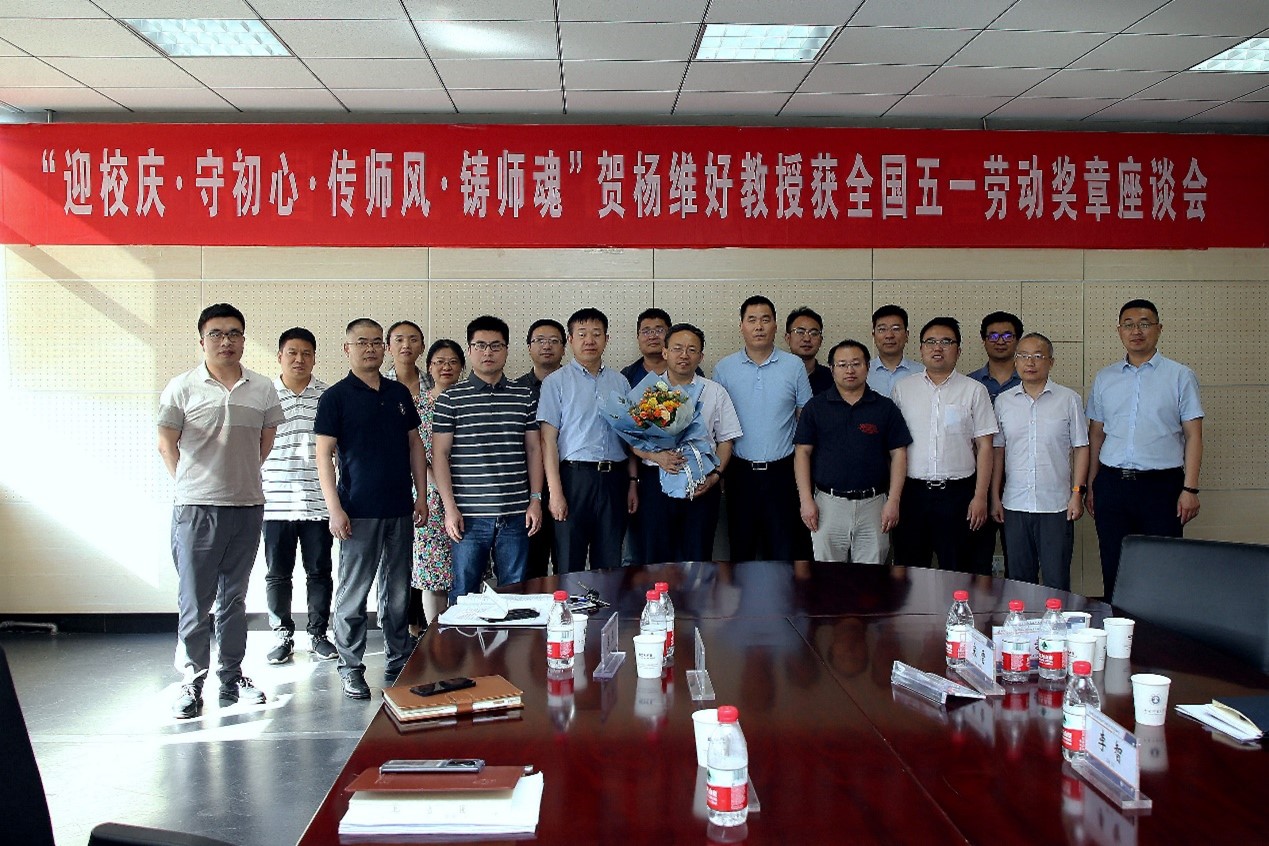 5月30日下午,“迎校庆·守初心·传师风·铸师魂”贺杨维好教授获全国五一劳动奖章座谈会在学院深地国重实验室411会议室举行。学院领导和深地国重实验室领导高顶、李晓昭、马占国、周劲锋、杨圣奇、李亭、李智、张营营、浦海,工会主席张红英,杨维好教授及岩土特殊施工技术研究团队成员,青年教师代表等30余人参加座谈。