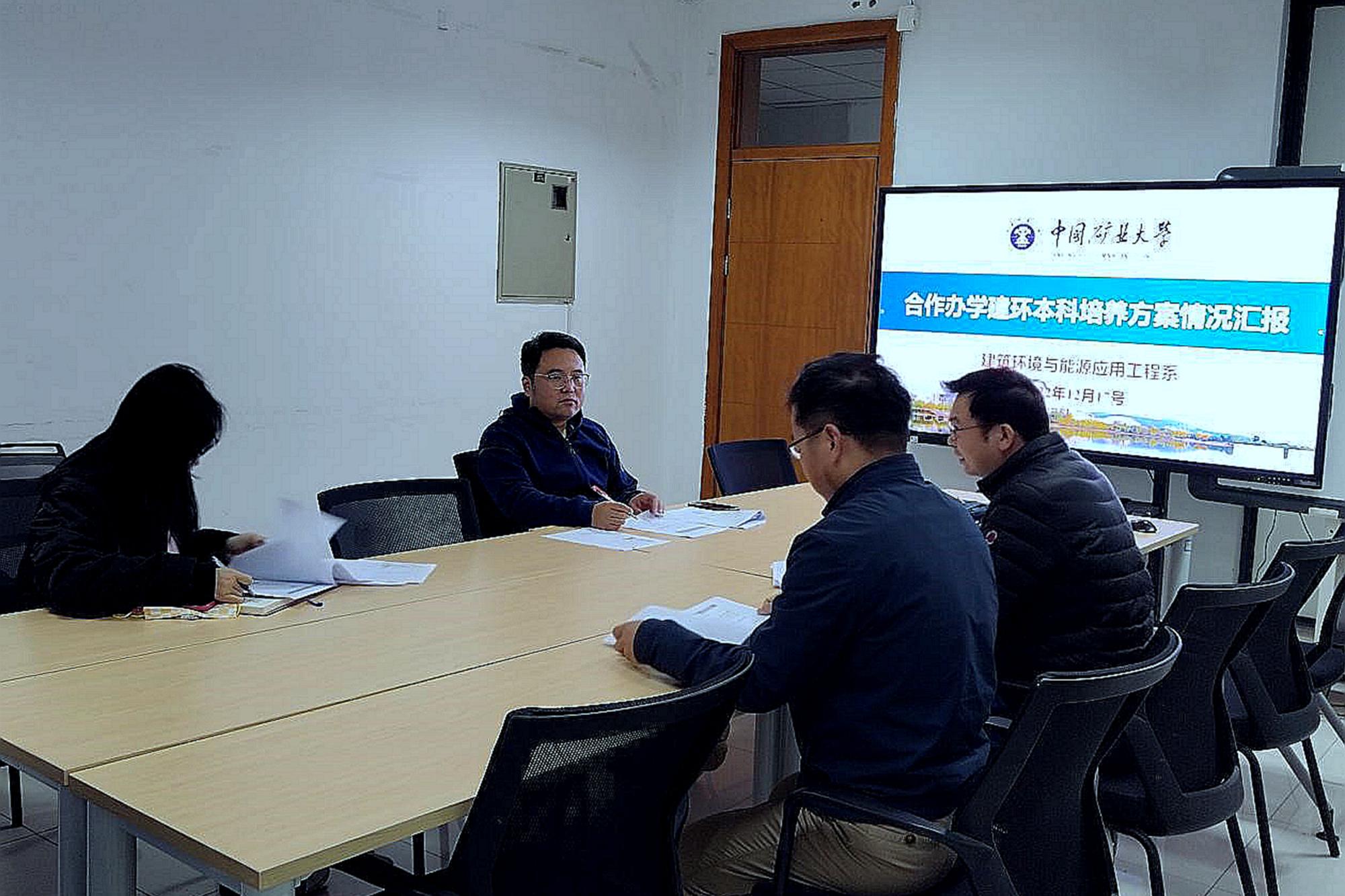 2022年11月17日下午16:00,在学院B206会议室召开中外联合办学培养方案修(制)订工作推进会。学院教学副院长张营营,中外合作办学土木工程专业负责人李贤,以及中外合作办学建筑环境与能源工程专业负责人张东海等参加了会议,会议由副院长张营营主持。
