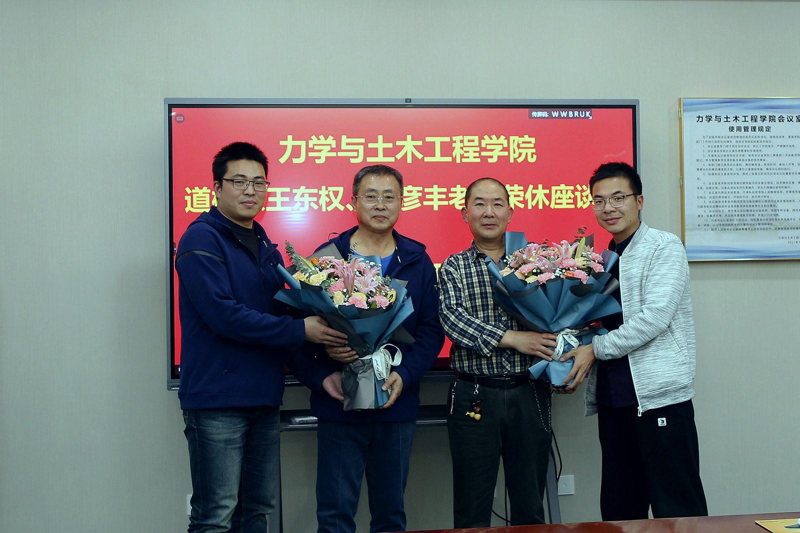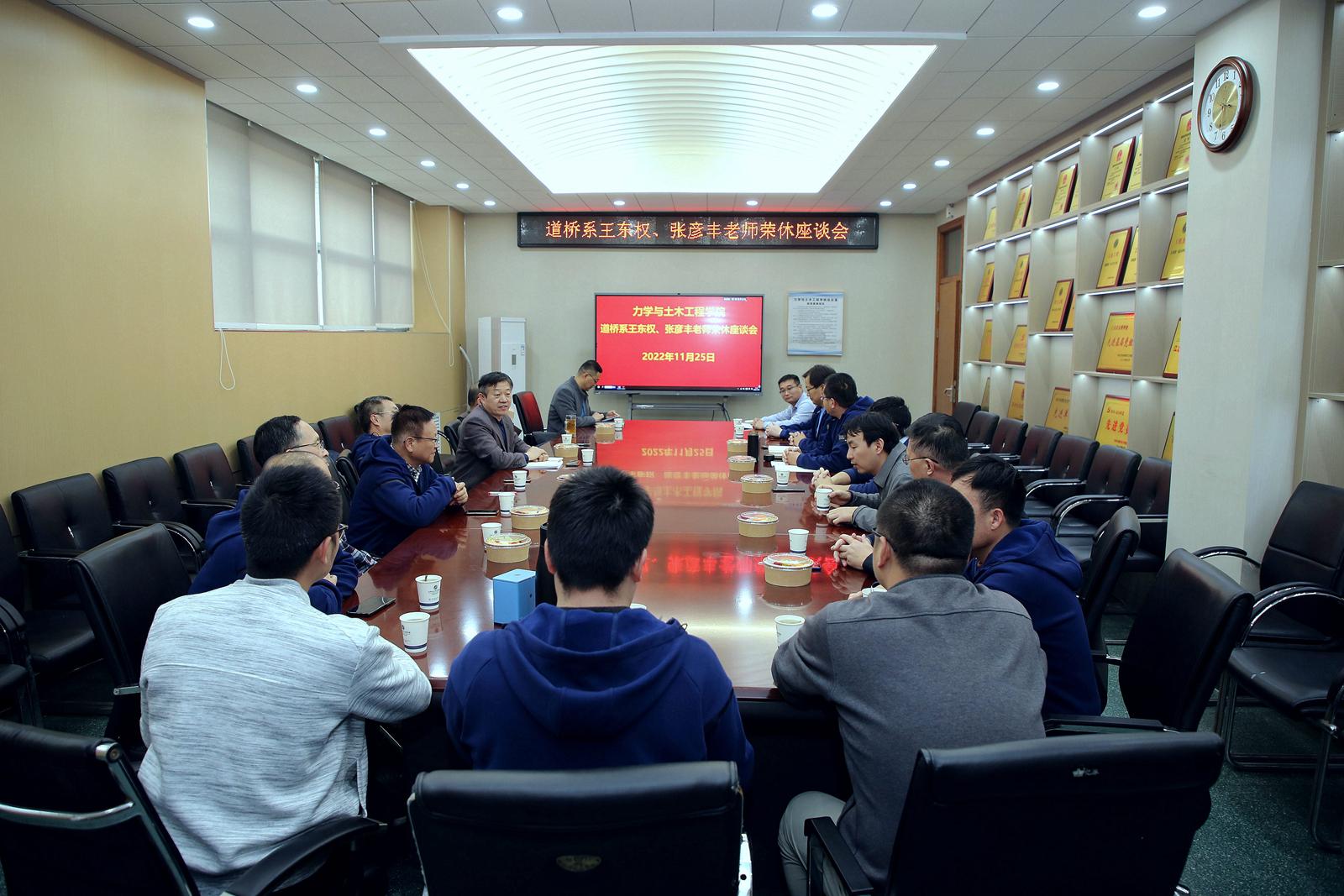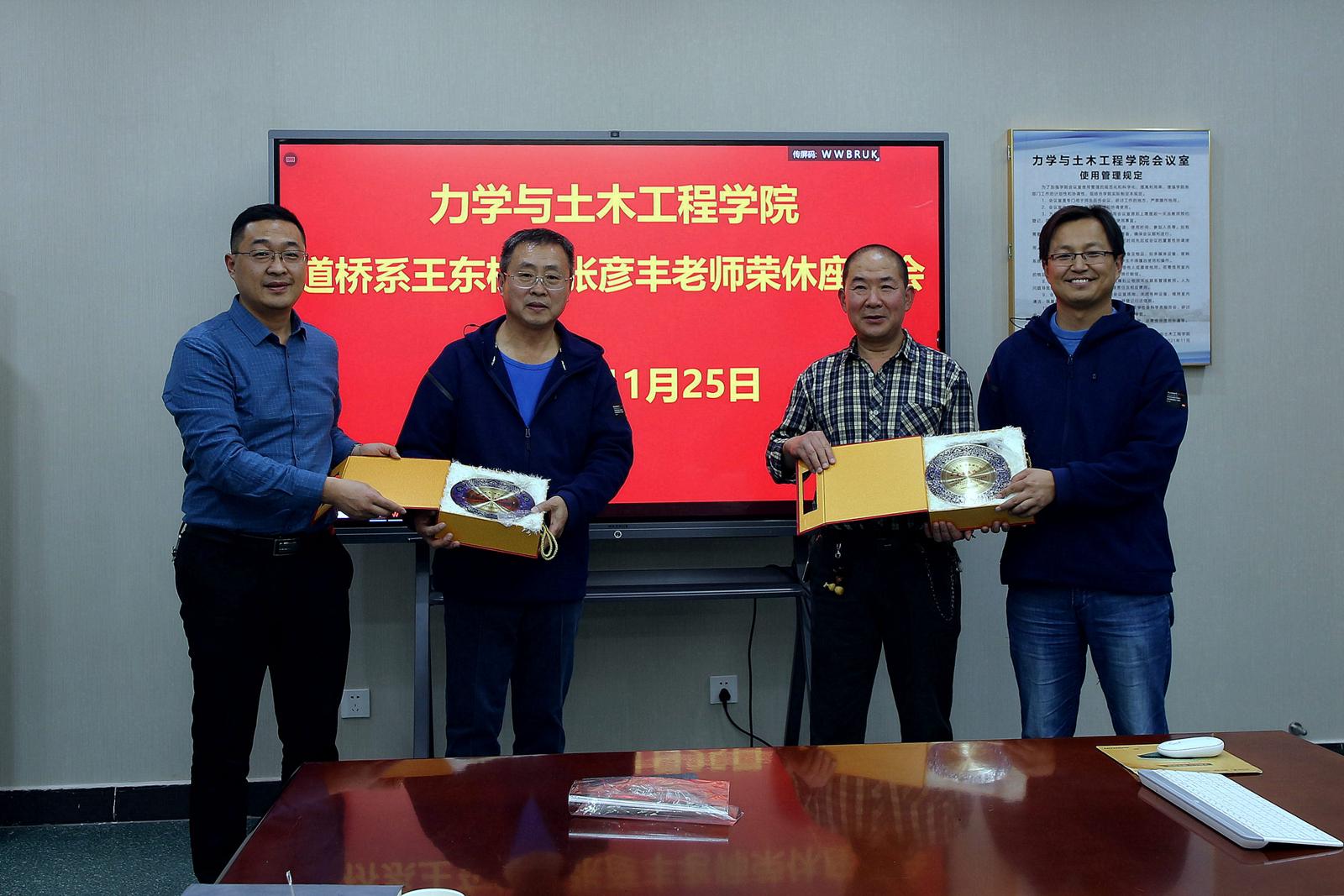 11月25日下午,道桥系在学院A220会议室举办了王东权、张彦丰两位老师荣休座谈会,院党委书记马占国、副书记李智以及道桥系全体教师参加了会议,会议由系支部书记柳志军主持。