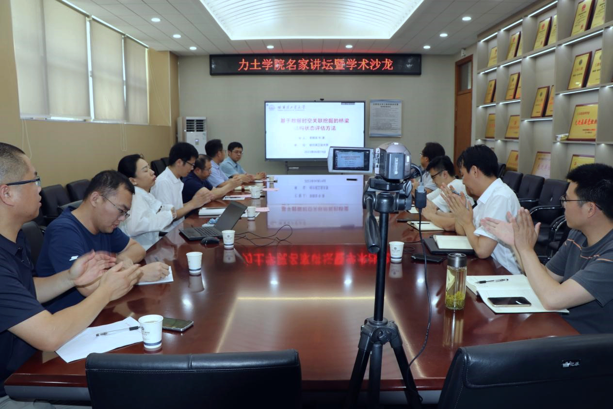 2023年06月20日下午,学院组织召开名家讲坛(2023年第九期)暨学术沙龙(第四十八期),本期主题是“路桥管养、精准感诊”,特邀国家自然科学基金优秀青年科学基金获得者、哈尔滨工业大学李顺龙教授参会作报告,学院教师王其昂副教授、孙钧宇老师参会作报告,会议由学院副院长张营营教授和道桥系副主任王高新副教授共同主持,学院副院长杨圣奇教授、道桥系东兆星教授、刘书奎副教授、柳志军副教授等、建工系及工管所老师参会交流。
