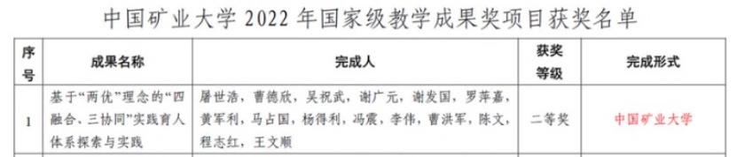 7月24日,教育部公布了2022年国家级教学成果奖。学院马占国书记和王文顺教授作为主要完成人的《基于“两优”理念的“四融合、三协同”实践育人体系探索与实践》成果奖项目荣获高等教育国家级教学成果奖二等奖。