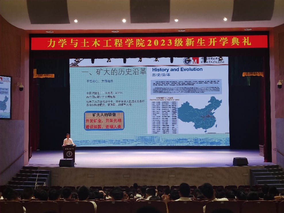 于明德礼堂开展校情校史教育。校文博中心、中国煤炭科技博物馆馆长王传棨主讲,2023级全体新生与新生辅导员参加。活动由学院党委副书记李智主持。