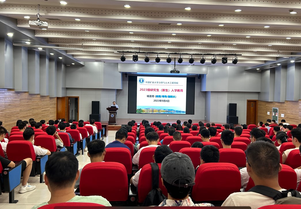 表示热烈的欢迎和衷心的祝贺,并为新生做了《研究生培养政策解读/科学道德与学风教育》专题报告。杨圣奇教授从“学院研究生学位点及导师队伍、2023年研究生录取情况及培养方向、研究生培养的学院政策、研究生学术道德与学风建设、研究生如何更好地成长”五个方面进行了详细解读,为研究生如何更好地完成学业提供了切实可行的指导性意见。