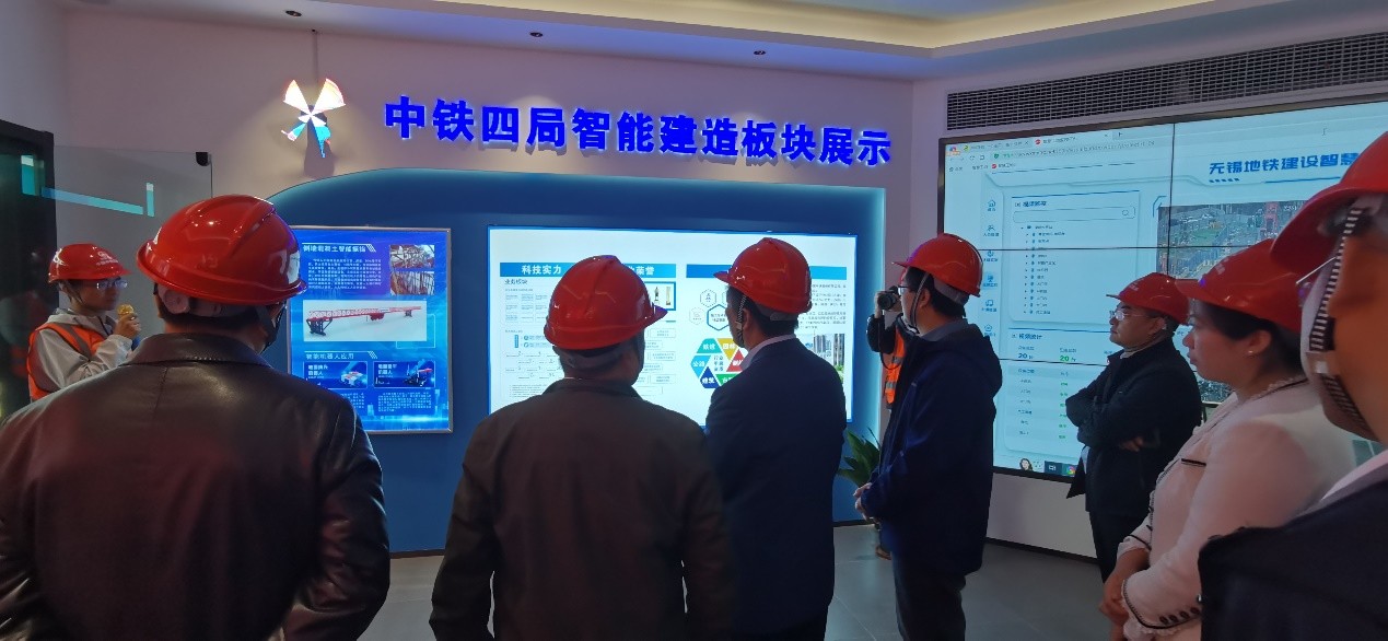 会后,李树忱一行调研了无锡地铁5号线清明古桥站的施工现场,参观了中铁四局集团项目部的智能建造数智中心,并在项目部就无锡地铁五线大规模建设中存在的相关工程技术难题进行了深入探讨。