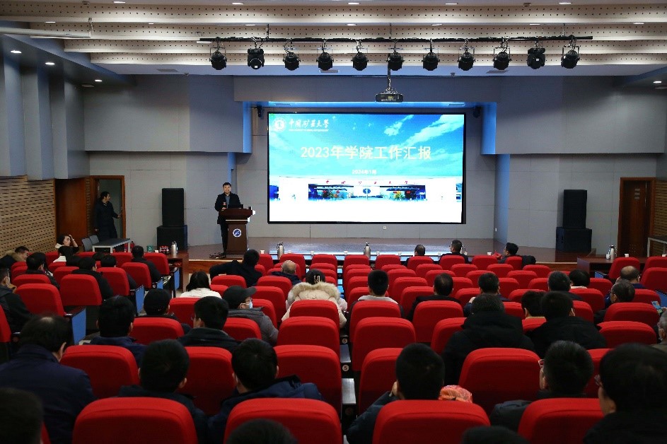 2024年1月5日下午,学院在A108报告厅召开全体教职工大会,学院党委书记马占国代表院班子对2023年学院各方面工作进行总结和汇报。全院教职工参加了会议。