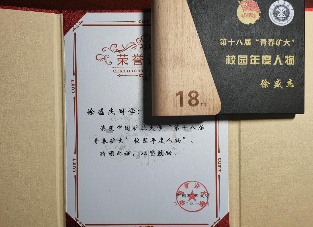 徐盛杰学习成绩优异,勇于创新,连续两年综合成绩排名专业第一,获校级“优秀学生”、基础课“学习之星”等荣誉称号。他还积极参加各类科创比赛,曾获国际大学生数学建模竞赛H奖和江苏省工程管理、创新创业与实践大赛三等奖等奖项二十余项。