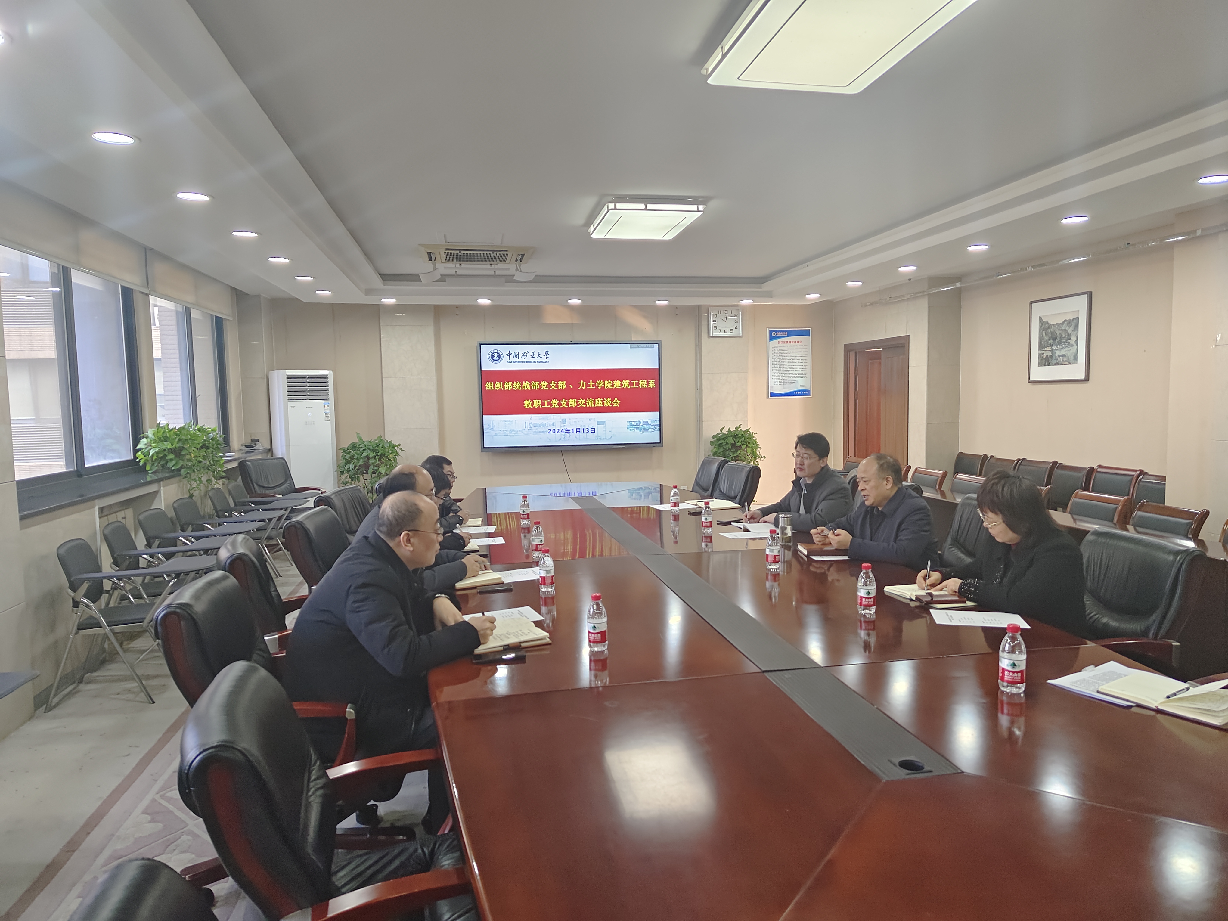 2024年1月13日上午,组织部统战部党支部与力土学院建筑工程系教工党支部在行健楼B401会议室,以支部党建与业务工作“一融双高”为主题举行工作交流会。校党委常委、组织部部长、统战部部长张万海,组统党支部书记刘静丽,建工系教工党支部书记尹世平及双方支部委员和党员代表参加了交流座谈。会议由组统党支部副书记秦峰主持。