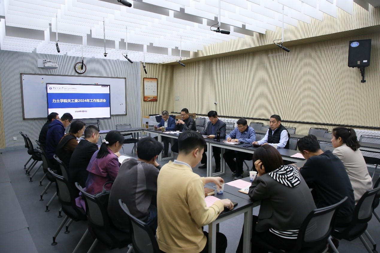4月8日下午,学院关工委2024年工作推进会在学院楼B201召开。学院党委书记、关工委主任马占国,关工委常务副主任周钢,党委副书记、关工委副主任李智,副院长、深地国重副主任、关工委副主任周劲锋,工会主席张红英以及学院关工委全体委员、相关工作负责老师参加了会议。会议由李智主持。